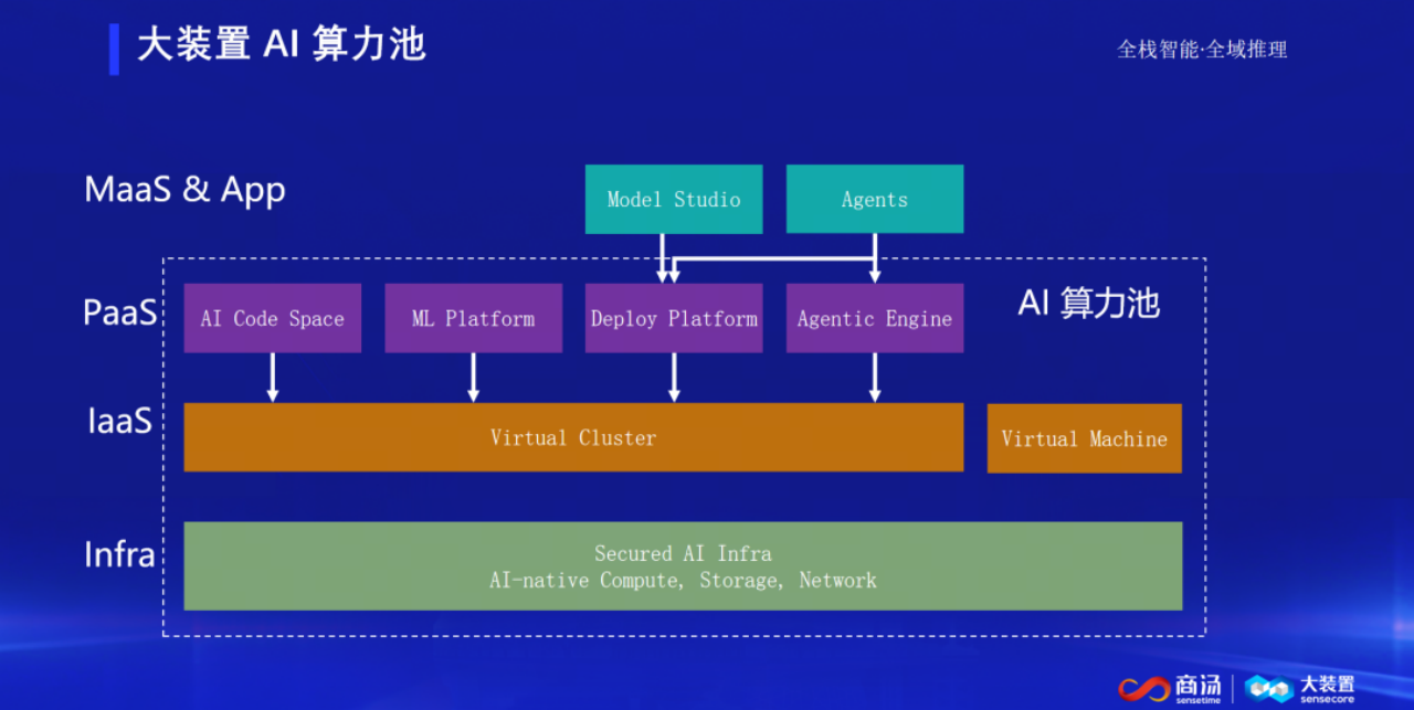 值得一提的是,在底层 Infra 层,商汤大装置创新应用虚拟集群技术,解决了传统云托管服务中“数据面管理重、扩容慢”的痛点。