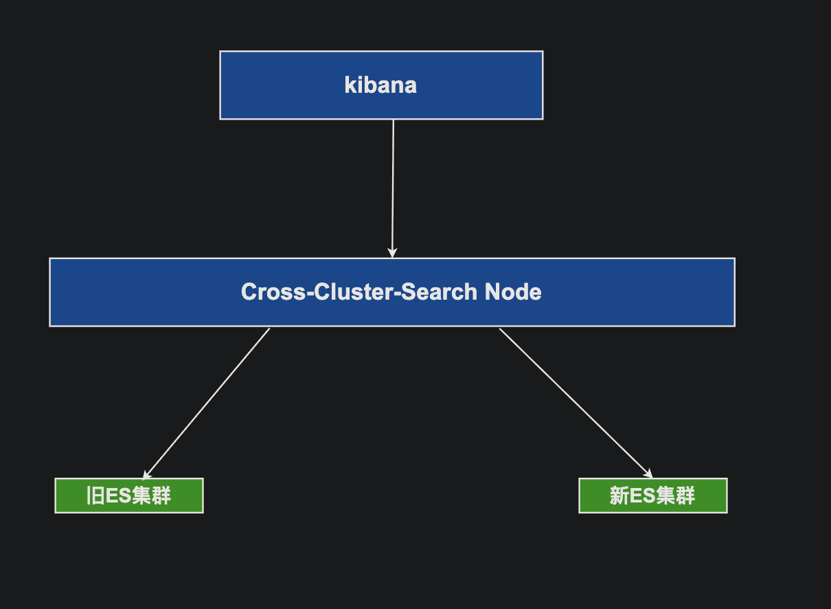 a、通过 ES 集群中的 ccs(Cross-Cluster-Search)的角色,可以实现 kibana 跨 ES 集群日志查询,由于资源的限制,新的中转集群开始只有 9 台物理节点,需要通过腾挪的方式,把旧集群的物理机逐步释放,再添加到新集群的方式完成硬件资源的迁移,由于初始的集群资源较少,所以迁移只能按照索引级别逐个迁移,涉及 200 多个索引,所以迁移周期比较长, ccs 支持多 ES 集群查询流程如下图: