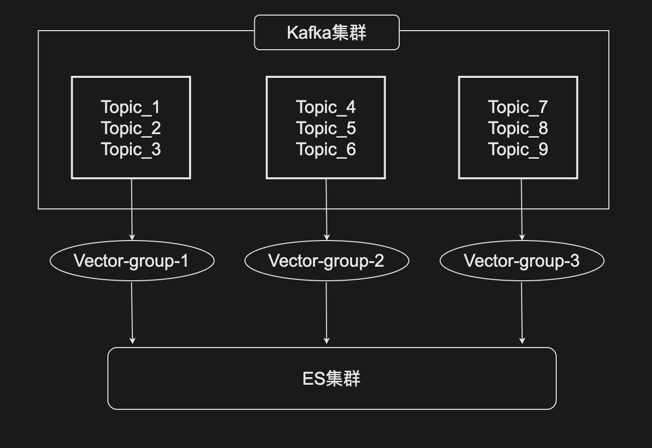从上图可以看出,在每一组内如果消费堆积,不会影响其它组的消费,只需要解决堆积的那个组的问题就可以,也可以对重点保障的业务所在的组投入更多的消费资源,做到了消费资源的精细化控制,也可以在活动期间对活动涉及到的业务组进行重点保障工作。 c、logstash-producer 替换为 vector,因为生产者不涉及规则解析,只承担了数据转发和限流的功能,所以此部分的替换工作相对简单,但是 vector 本身的一些参数设置会影响其投递到 kafka 的速率,实际的替换过程中团队伙伴也是沉淀一些参数配置的最佳实践。