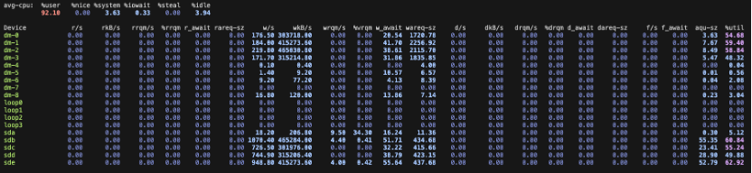 从上图可以看出,使用本地磁盘存储代替远程存储,磁盘 io 性能得到了指数级提升。