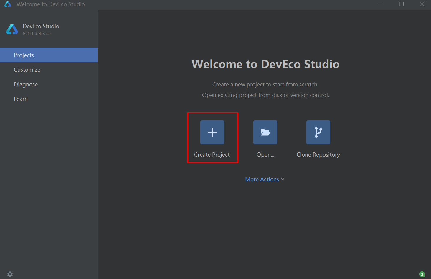 打开 DevEco Studio,点击 Create Project 创建项目。