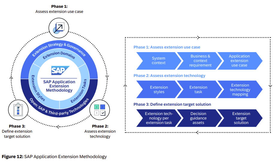 SAP 应用扩展方法论为客户和合作伙伴定义组织特定扩展策略提供结构化、技术无关的方法。